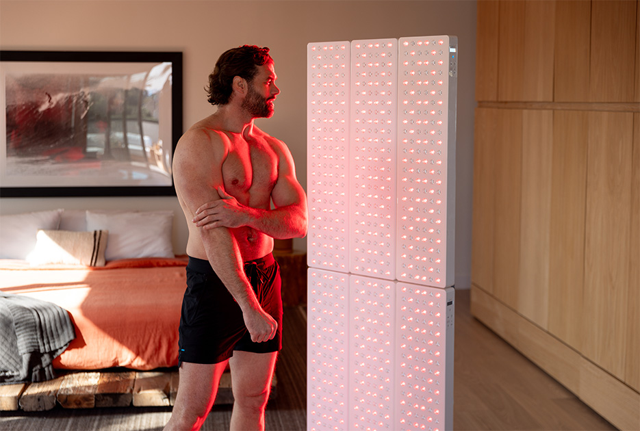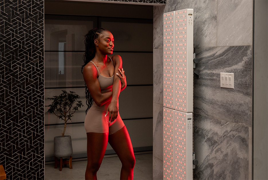The Elite Kit offers full-body coverage combining 6x Joovv Solo devices and is available with the Nano Wall System, or Mobile Stand.