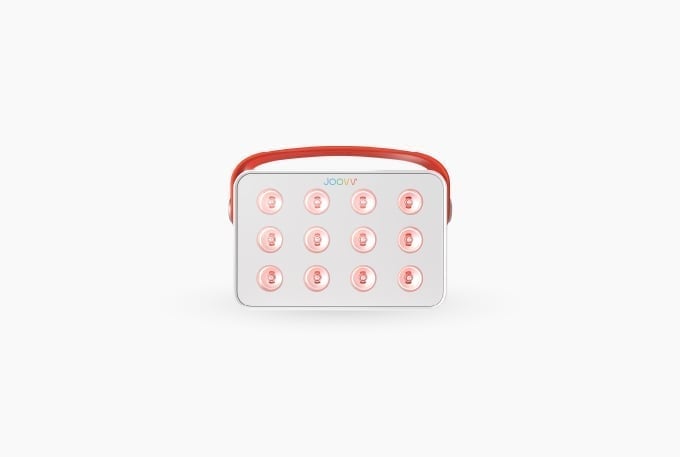 The Joovv Go is a portable handheld device that offers small treatment coverage and is available with an additional charging dock.
