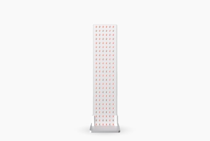 The Joovv Solo offers moderate coverage and is available with the Boot Floor Stand, Door Mount System, or Nano Wall System.